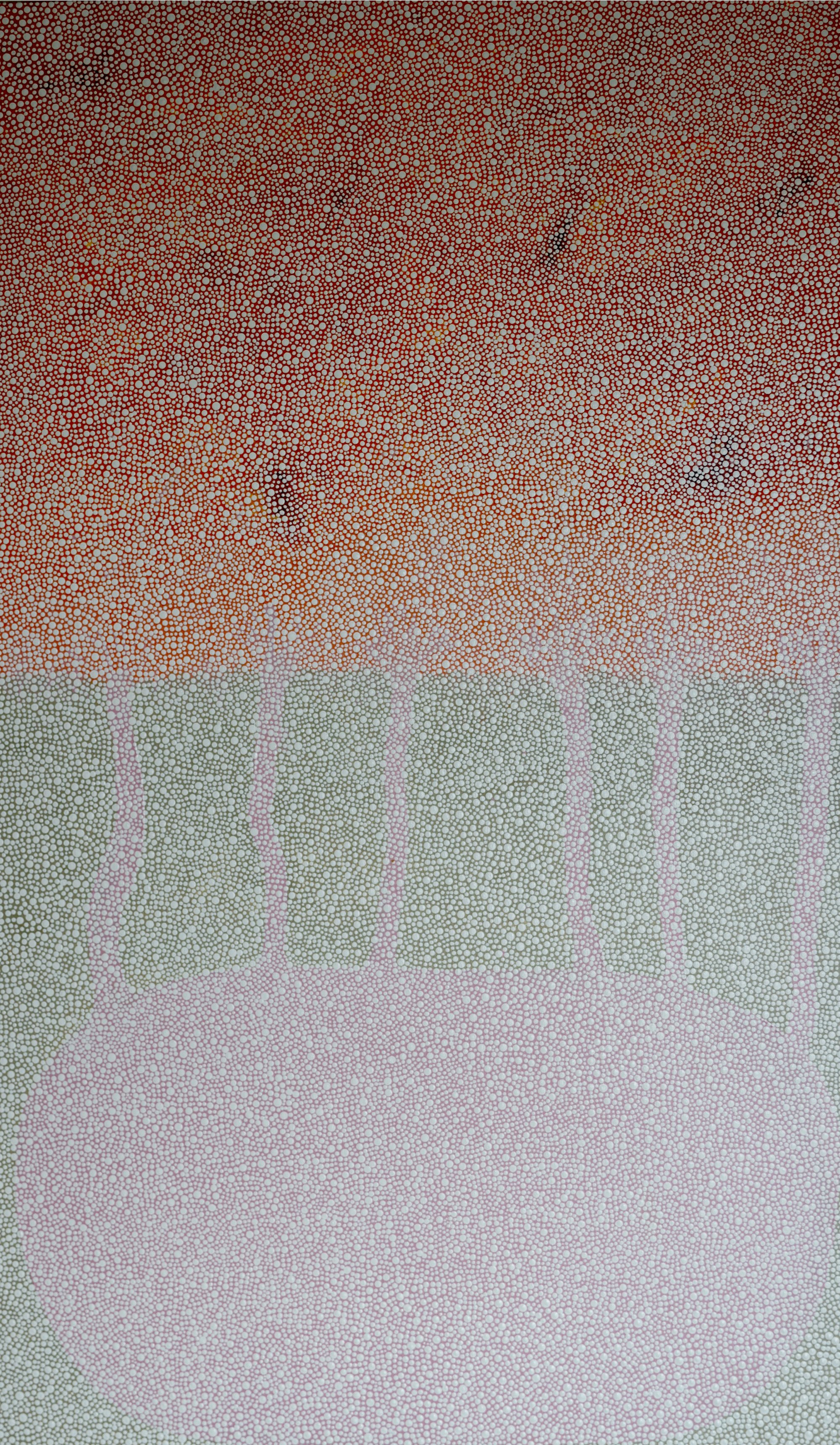 The rain moves down the ochre cliff faces at my favourite and sacred beach, white, magenta, and orange ochre combined together turn into light pink creating large puddles in the sand that feels and looks like cream. We play amongst this, such smooth, silky, and cold texture rubbed all over our skin and feels nourishing. We walk back to where we swim and wash off the dry cracked ochre in the saltwater. We see the water go a creamy colour.